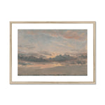 "A Cloud Study, Sunset" captures the fleeting beauty of twilight, as the day surrenders to the embrace of night. The painting, a work of John Constable, stands as a testament to his mastery in capturing the transient and atmospheric effects of nature. Constable's sky is a riot of colors, from warm golds and oranges in the lower parts to deepening blues and purples higher up, where the remaining daylight battles with the emerging twilight. Wisps of clouds seem to glow with internal light, painted with delicate brushstrokes and a keen eye for detail that brings out the luminosity and softness of the cloud forms.
