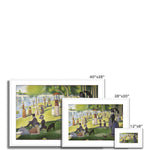 The painting measures approximately 81 1/2 x 121 1/4 inches (207.6 x 308 cm) and captivates viewers with its serene depiction of various people enjoying a sunny afternoon on La Grande Jatte, an island located in the Seine. Seurat employed the technique of Pointillism, using tiny, distinct dots of color applied in patterns to form the image when viewed from a distance. This method not only showcases Seurat's prowess in color theory and optics but also infuses the painting with a luminous, shimmering quality.