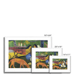Paul Gauguin, originally from France, is renowned for his departure from the conventional Western artistic styles of his time, leaning instead towards a more primitive and symbolic approach. His journey to Tahiti marked a significant shift in his artistic direction. Seeking to escape European civilization and its influences, Gauguin arrived in Tahiti in 1891. He aimed to find a more simplistic and purer form of life and art, free from the constraints of Western society. This painting, created shortly after his arrival, is a testament to that vision.