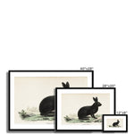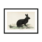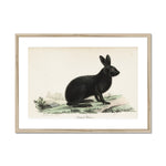 The painting depicts a black hare, rendered with remarkable detail and accuracy against a subtle, neutral background. The hare's dense, dark fur is meticulously painted, showcasing a fine array of textures and shades that capture the play of light and shadow across its body. The animal’s posture is both alert and graceful, with ears perked up and eyes wide open, portraying a sense of readiness and curiosity. The hare's delicate whiskers and nuanced expression invite the viewer into a moment of calm and attentive observation. The surroundings are minimalistic, ensuring that the focus remains squarely on the hare itself, mirroring the style typically favored in scientific illustrations of that period.