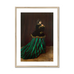 "Camille (The Woman in the Green Dress)" is an exquisite painting by the renowned French Impressionist Claude Monet. Completed in 1866, this work captures the artist's future wife, Camille Doncieux, in a striking full-length portrait that broadens our understanding of Monet's early career and his mastery in capturing the play of light on fabric and figure.