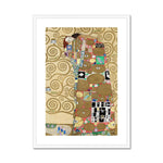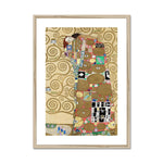 "Fulfillment" is part of a larger frieze titled "Stoclet Frieze," which was a commission for the Palais Stoclet in Brussels, an opulent private mansion designed by the architect Josef Hoffmann. The painting itself is a masterful representation of Klimt's ability to blend rich, decorative elements with symbolic and emotive content.