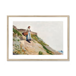 "Girl Carrying a Basket" is an exquisite example of Winslow Homer's adeptness at capturing rural life and the simple, unembellished beauty of the American countryside. This painting portrays a young girl, who appears to be around the age of fourteen, dressed in period-typical attire – a modest, dark-colored dress with a high neckline and a white apron. She is seen carrying a woven basket over her right arm, which seems to be filled with freshly picked vegetables or flowers, suggesting a pastoral activity.