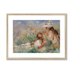 "Girls in the Grass Arranging a Bouquet" is a breath-catching work by the renowned French Impressionist Pierre Auguste Renoir, completed in 1890. This painting masterfully captures the essence of leisurely innocence and the simple pleasures of life, two themes that resonate deeply throughout Renoir's oeuvre.