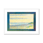"Seascape (Gravelines)" by Georges Seurat captures a tranquil and luminous marine scene. The painting depicts the harbor and the gently rolling waters at Gravelines, a coastal town in Northern France. The composition is elegantly simple, characterized by subtle gradations of color and light that convey the serene atmosphere of a leisurely day by the sea.