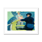 "The Boating Party" is an oil on canvas painting by the American artist Mary Cassatt, created between 1893 and 1894. This richly colored and dynamic composition captures a serene afternoon on the water, featuring a woman and a child seated in the stern of a sailboat, while a man rows them forward.