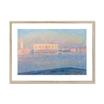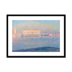 "The Doge's Palace Seen from San Giorgio Maggiore" is an exquisite representation of Venetian architecture bathed in delicate, atmospheric light, characteristic of Claude Monet's Impressionist style. The painting captures the view of the Doge's Palace across the Grand Canal, as seen from the island of San Giorgio Maggiore.
