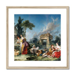 1. Artist: François Boucher (1703-1770) was a premier painter of the Rococo movement, known for his voluptuous mythological scenes, pastoral landscapes, and decorative artistry. His works captured the frivolity, elegance, and ornate aesthetic that defined the Rococo style of 18th-century France.