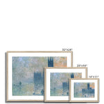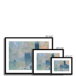 In "The Houses of Parliament, Sunset" (one of the notable pieces in this series), Monet's hallmark brushwork perfectly conveys the ephemeral qualities of light and color. The Parliament edifices rise like majestic, blurred forms against a sky ablaze with the warm hues of sunset. The horizon is dominated by shades of fiery orange and deep violet, reflecting onto the River Thames below, creating a dreamlike harmony between the sky and water.
