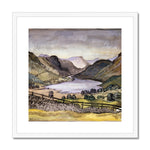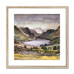 "Thirlmere" depicts a serene and expansive lakescape nestled within a lush, verdant valley. The scene is framed by distant hills and mountains, which gently descend toward the tranquil waters of Thirlmere, a reservoir situated in the Lake District of England. The landscape is rendered with meticulous attention to detail, with the lake's glistening surface capturing the sky's reflection, creating an ethereal, almost otherworldly ambiance.