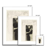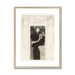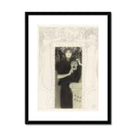 - Figures: The central figure seems burdened by despair, head bowed and body cloaked in a dark, flowing robe. Flanking this figure are two supporting figures, perhaps representing different shades of grief. Their faces are rendered in Klimt’s distinct style, exuding melancholy and introspection. The figures’ expressive body language and minimalistic facial expressions evoke a deep narrative of sorrow and introspection.