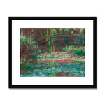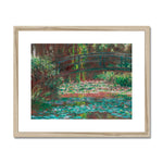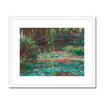 "Water Lily Pond" is an evocative and immersive representation of the natural beauty Monet was so passionate about. This painting centers on a peaceful pond filled with blooming water lilies, a motif that became synonymous with Monet's late career. The pond is framed with lush vegetation that appears to burst with life in every stroke. Above the water lilies, an elegantly arched Japanese-style wooden bridge stretches across the scene, partially obscured by the greenery that hangs and sways in the gentle breeze.