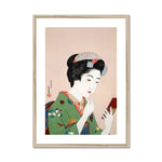 3. Artistic Movements: "Woman Applying Rouge" fits seamlessly within the Shin-hanga movement’s goals of blending traditional Japanese art forms with Western influences, like realistic shading and perspective, while maintaining essential Japanese aesthetics.