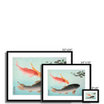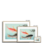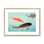 "Common and Golden Carp," a captivating artwork by Ohara Koson, reflects the artist's unparalleled finesse in the realm of shin-hanga, the early 20th-century Japanese woodblock print movement. Known for his masterful depictions of birds, insects, fish, and flowers, Koson's work in this genre is vibrant and delicate, lush yet defined by an elegance innate to Japanese art traditions.