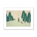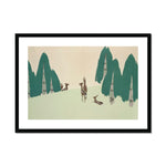 His brushwork is both expressive and controlled. The contours of the deer are defined by sleek, confident strokes, highlighting their sinewy forms, while their fur is suggested through delicate, almost calligraphic lines. The serene and almost meditative tone of the image invites contemplation and introspection.