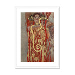 "Hygieia," created in 1907 by the celebrated Austrian symbolist painter Gustav Klimt, is a segment from his larger work, the "Medicine" panel, one of the three university paintings commissioned for the ceiling of the Great Hall at the University of Vienna. As a vision of divine femininity and healing, the painting captures Klimt's opulent and richly detailed style.