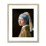 "Girl with a Pearl Earring," often referred to as the "Mona Lisa of the North," is a captivating portrait that epitomizes Vermeer's mastery of light, color, and intimate expression. The painting features a young girl in a dark, undefined space that enhances her luminous visage. Her head is turned to the right, looking over her shoulder, which gives the impression of a moment captured in time, as though she has just turned to respond to a voice or thought.