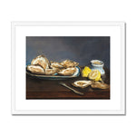 In "Oysters," we see evidence of Manet’s revolutionary eye for detail and his ability to infuse still life with an almost narrative quality. The painting bridges the gap between strict realism and the more impressionistic tendencies that would later define his work. Despite its seeming simplicity, "Oysters" is a study in contrasts—the rough texture of the shells against the smooth flesh, the vibrant lemons against the muted background—which showcases Manet's skill in creating dynamic compositions from static subjects.
