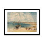The background typically features the expansive sky and sea that Turner is celebrated for. His ingenious use of translucent layers of watercolor creates a sense of depth and atmosphere. The sky is likely painted in soft yet dynamic hues, capturing the interplay of light and cloud, which could range from a gentle morning glow to a dramatic sunset.