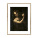 "Saint John the Baptist" is an extraordinary painting created by the illustrious Renaissance master, Leonardo da Vinci, in the years 1513 to 1516. This enigmatic work portrays John the Baptist in a half-length figure, exuding a spiritual and almost ethereal presence.