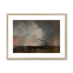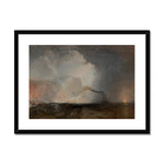 One can notice smaller details, such as tiny figures in a boat overwhelmed by the powerful sea, reinforcing the Romantic theme of man’s vulnerability against the forces of nature. Turner's brushwork is dynamic and expressive, with sweeping lines that convey movement and energy, characteristic of his mature style.