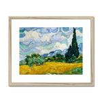 "Wheat Field with Cypresses" by Vincent van Gogh is a mesmerizing and vibrant landscape painting that captures the essence of the French countryside. This artwork showcases a resplendent wheat field under the dynamic sky, with rolling hills in the background. Dominating the scene are tall, dark-green cypress trees, a motif that frequently appears in Van Gogh’s work. These cypresses, often associated with traditional Mediterranean landscapes, add a dramatic and vertical contrast to the undulating fields and clouds.