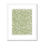 The "Willow Pattern" is characterized by a lush, dense composition that draws heavily on naturalistic forms. The eponymous willow tree sits at the center of the design, its sweeping branches and sinuous leaves filling much of the canvas with a vibrant, verdant motif. The leaves and branches intertwine in a rhythmic pattern, creating a sense of flowing movement throughout the work.