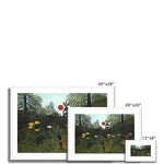 "Virgin Forest with Sunset" is one of Rousseau’s later works, contributing significantly to the Primitive or Naïve art movement. This painting epitomizes Rousseau's style, where meticulous attention to the natural world merges with imaginative, almost surreal elements. His works were often met with skepticism from the art critics of his time but found admiration from avant-garde artists including Pablo Picasso and the Surrealists, who appreciated his imaginative and unconventional approach.